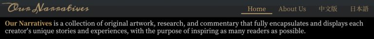 Our Narratives is a collection of original artwork, research, and commentary that fully encapsulates and displays each creator′s unique stories and experiences, with the purpose of inspiring as many readers as possible.