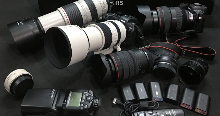 我的兩台機身 Canon EOS R 5 、 Canon EOS R , 我的三顆 RF 鏡頭 RF 15-35mm F2.8L IS USM 、RF 28-70mm F2L USM、RF70-200mm F2.8L IS USM。