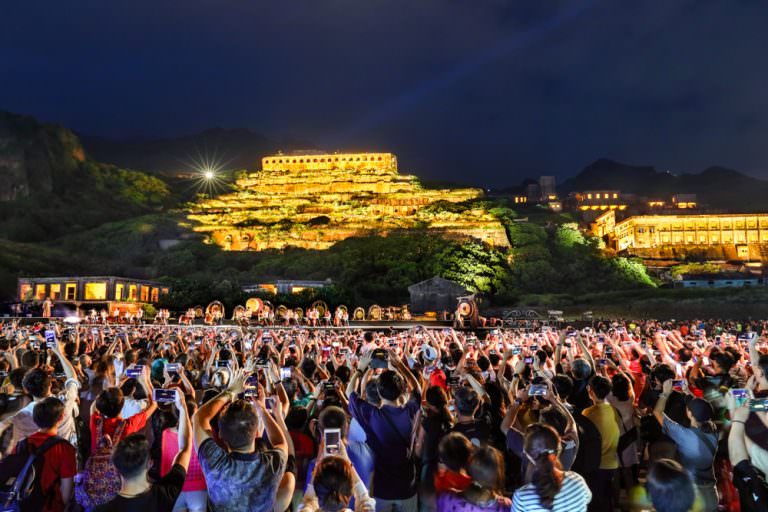 有新北「天空之城」美譽的瑞芳區十三層遺址,在琥珀色燈光和優人神鼓的震撼人心的鼓聲中點亮了,點亮那一刻,在場上萬人齊聲驚呼,像是希臘神殿也像是布達拉宮。