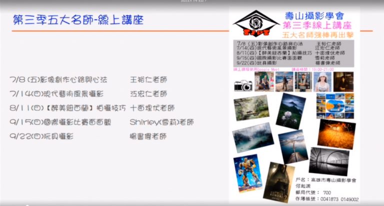 雪莉老師在壽山攝影學會連續直播三季 . 非常感謝大家的支持