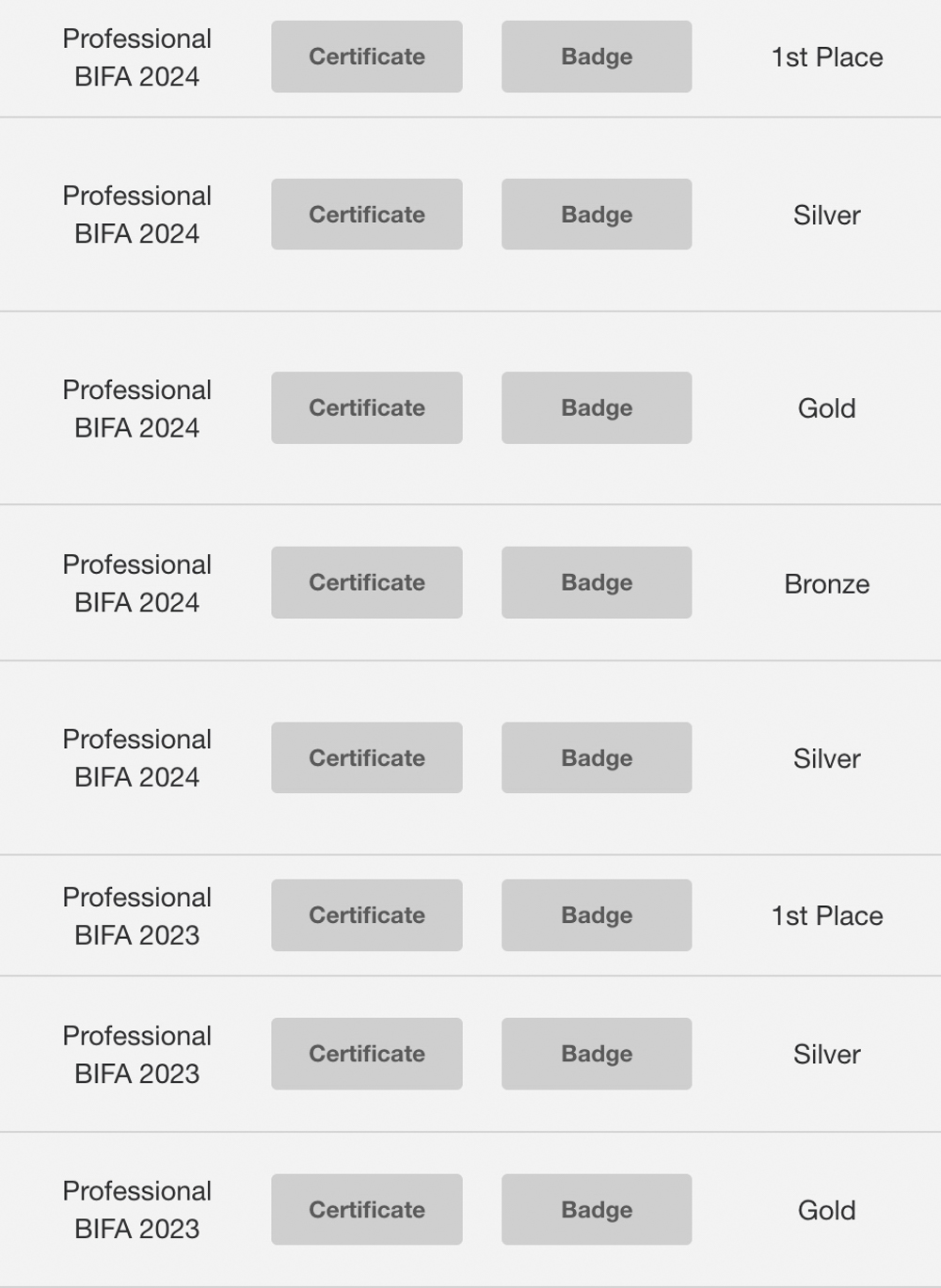 2024 BIFA 布達佩斯國際獎類別首獎 特殊年度攝影師 (11個金牌中的第一)