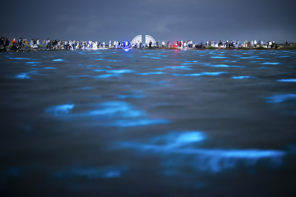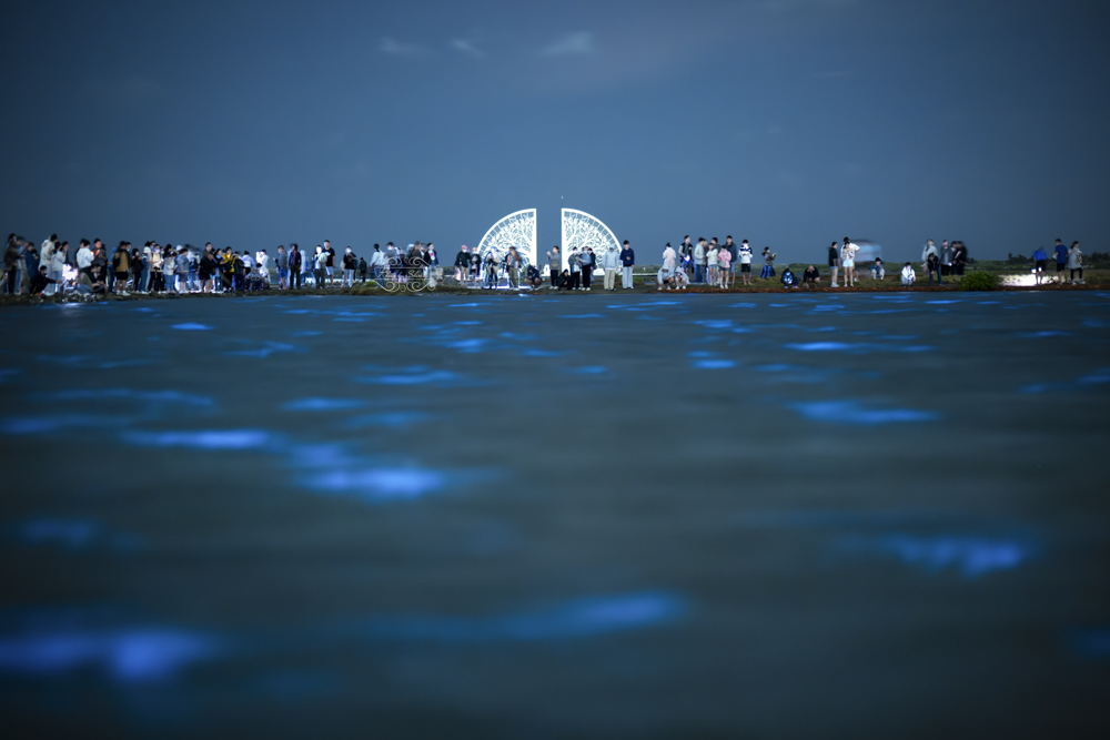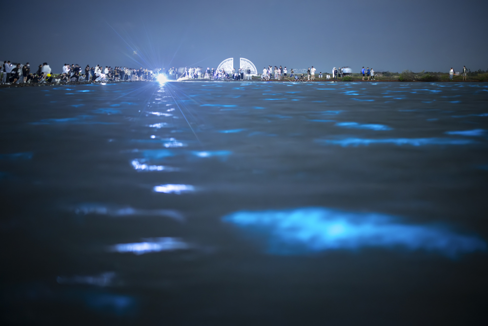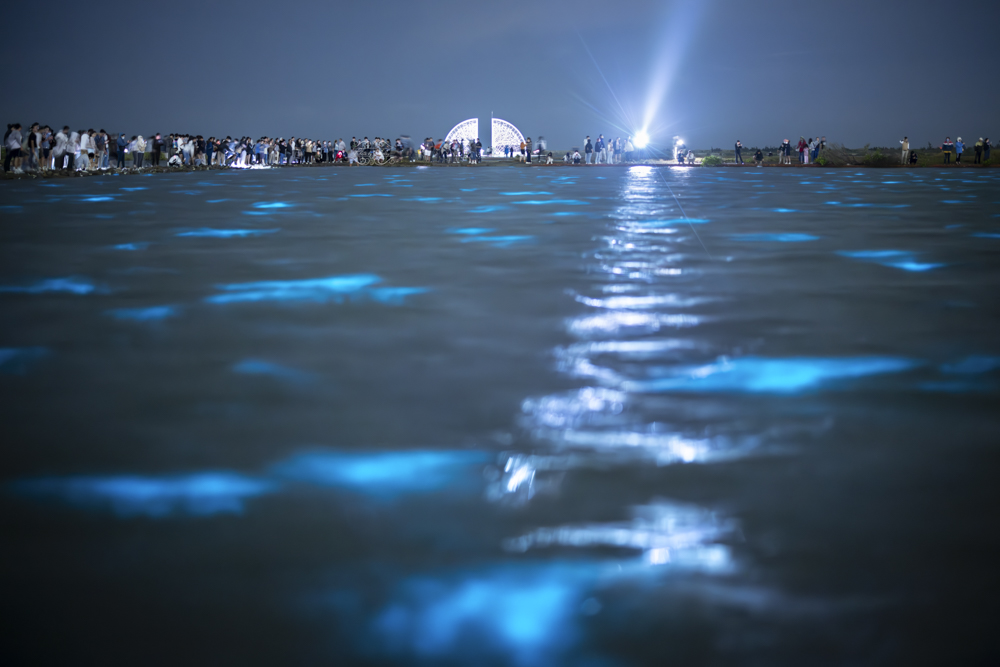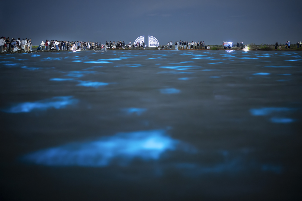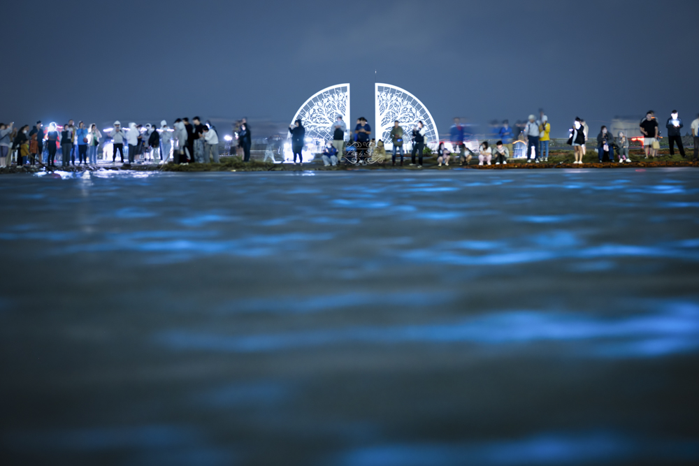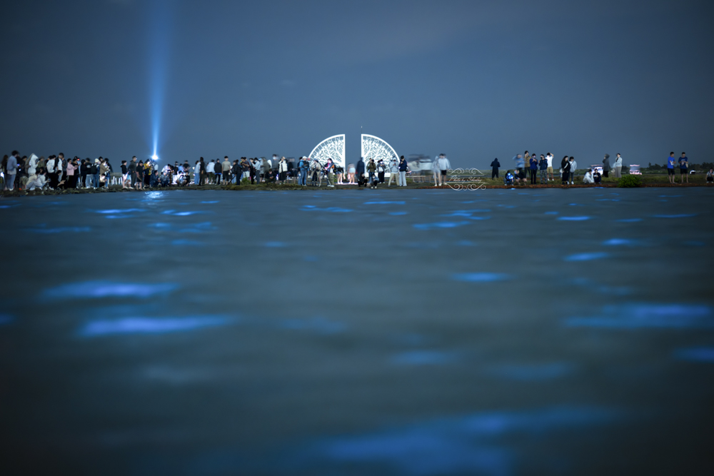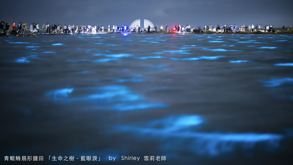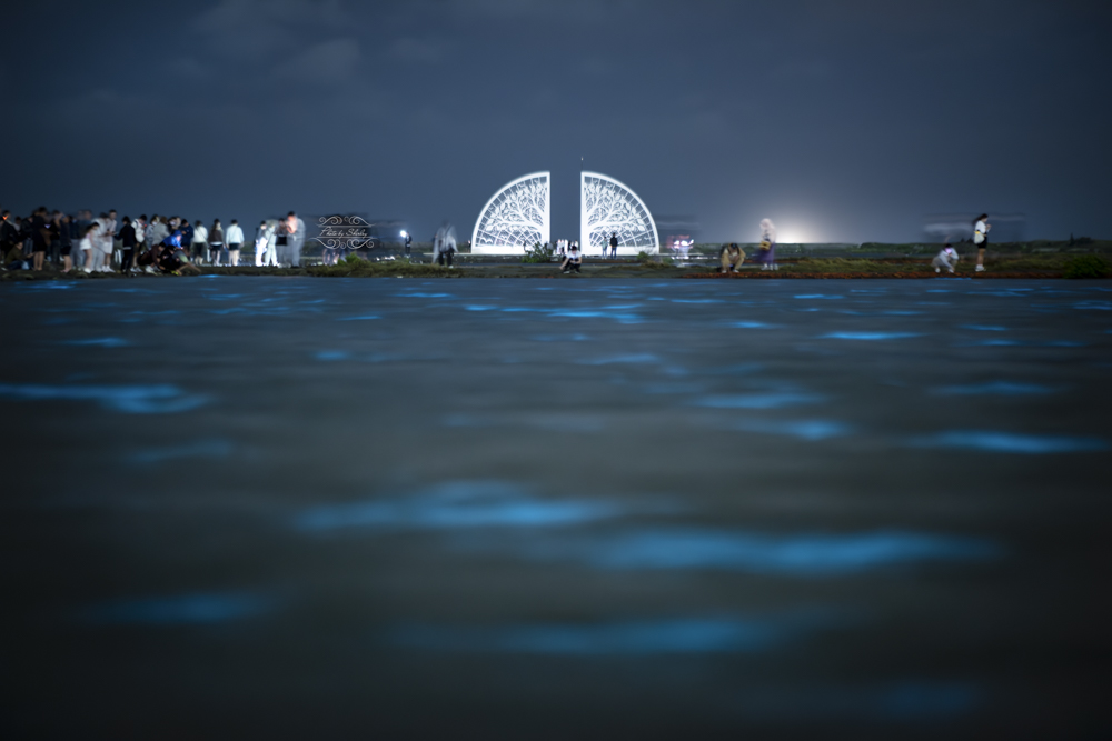 這一夜,「生命之樹」迎來自建造以來最壯麗的藍眼淚奇景。滿潮時分,青鯤鯓扇形鹽田被湛藍光海包圍,無數旅人齊聚,只為見證這場由自然與宇宙共譜的夢幻饗宴。