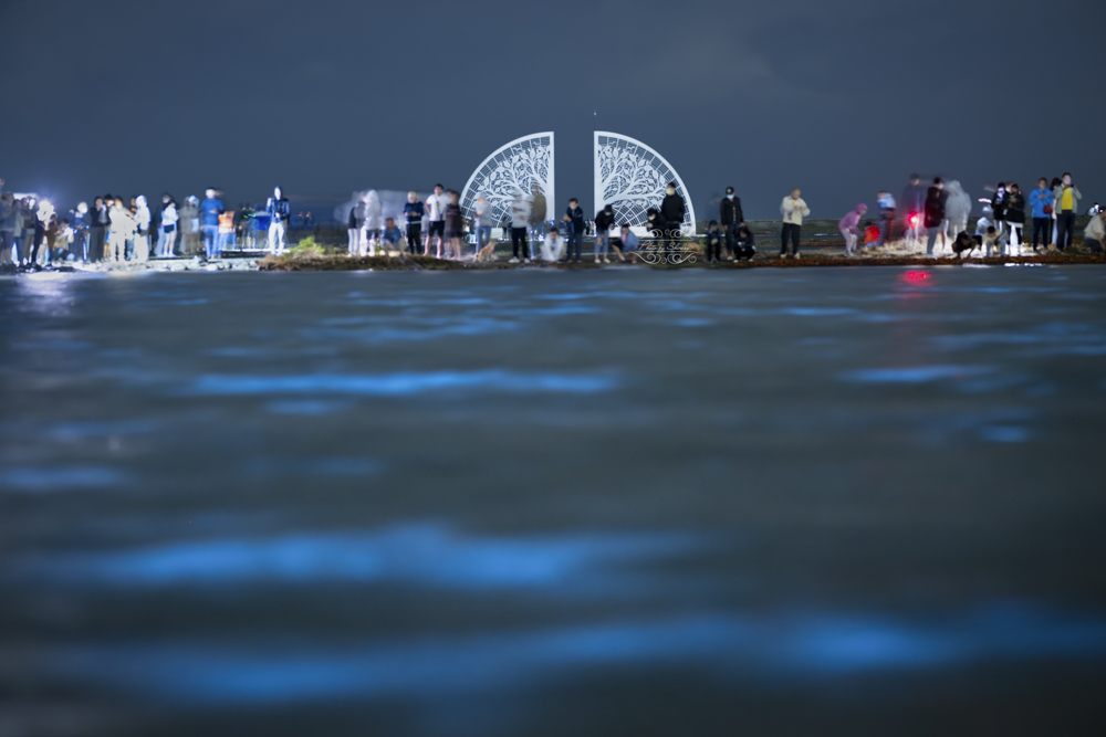 🌊 滿潮前後半小時,是藍眼淚最壯觀的時刻。當晚海風強勁、浪花飛舞,現場遊客熱鬧激發藍光,海面閃耀如夢。那一刻,「生命之樹」與大海一同發光,成為夜色中最動人的奇景。