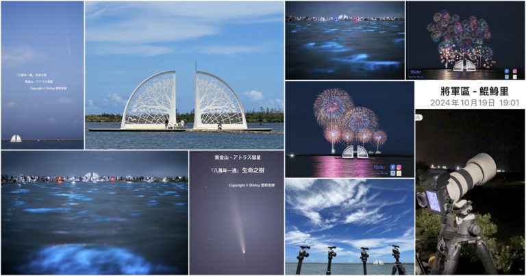 2024年10月19日,「八萬年一遇」的「紫金山彗星」拍攝,我也特地南下把宇宙的奇蹟,和大地的藝術 「生命之樹」,一同留在影像裡。並做成 4 K 縮時影片。矗立在青鯤鯓扇形鹽田的海面上,有一座象徵希望與能量的藝術品「生命之樹」。